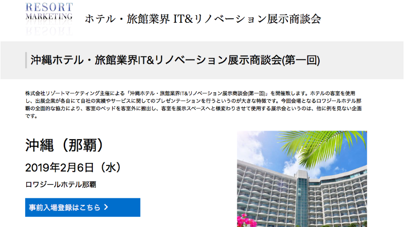 2月6日(水) 沖縄ホテル・旅館業界 IT&リノベーション展示商談会に参加します。