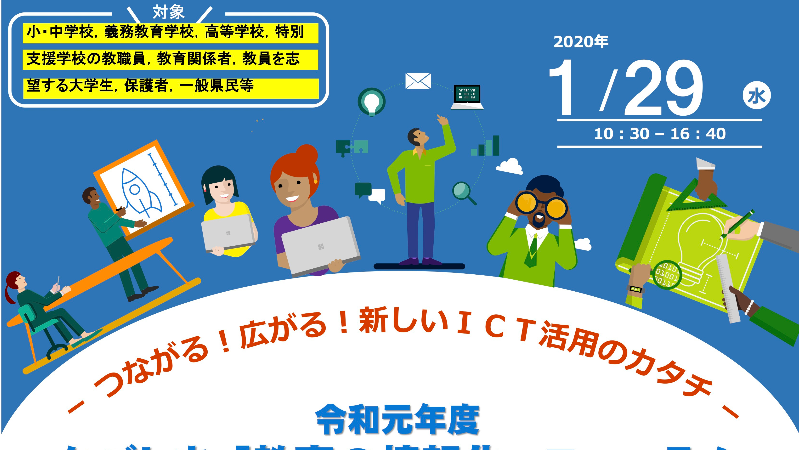 対象:小・中学校、義務教育学校、高等学校、特別支援学校の教員、教育関係者、教員を志望する大学生、保護者、一般県民等