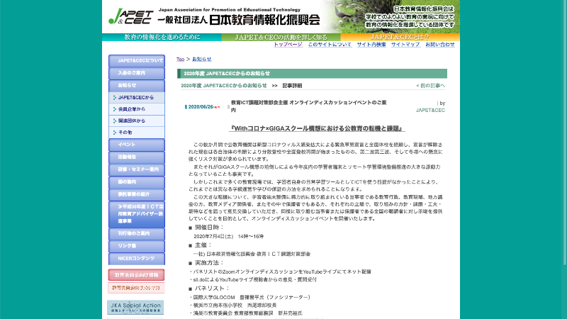 弊社代表も参加しています。 日本教育情報化振興会主催のオンラインディスカッションイベントが開催されます。