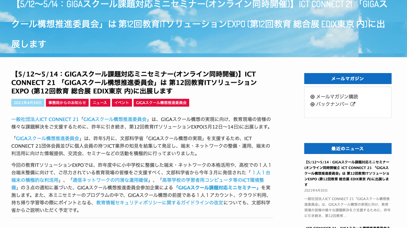 弊社は第12回教育ITソリューションEXPOのGIGAスクール課題対応ミニセミナーに参加します。