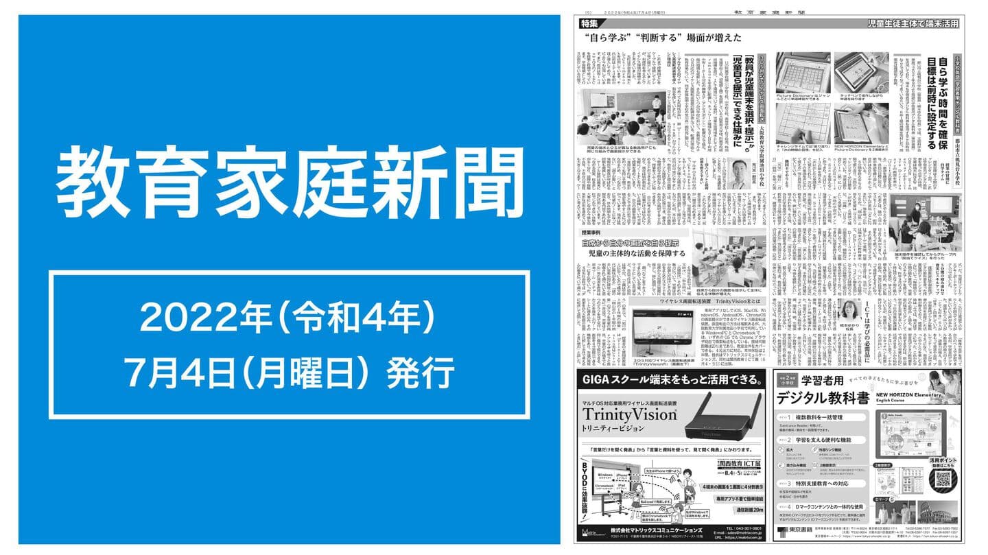 教育家庭新聞7月4日号にTrinityVisionの広告・記事が掲載されました。