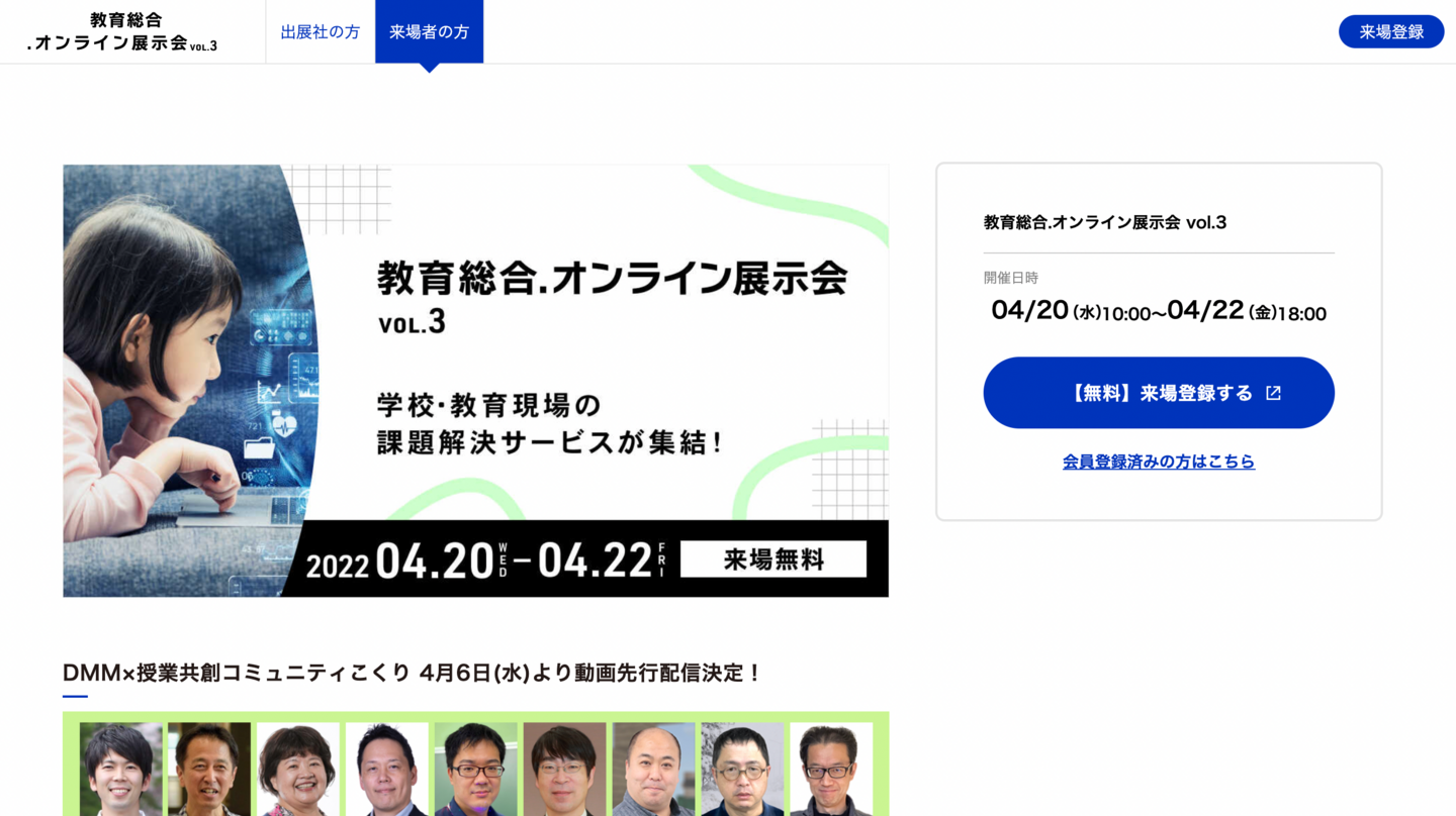 開催日:4/20(水)〜4/22(金) 10:00〜18:00 学校・教育現場の課題解決サービスが集結! 教育業界では、2020年度より新学習指導要領やGIGAスクール構想実現のための環境整備など様々なアップデートがかかってきました。