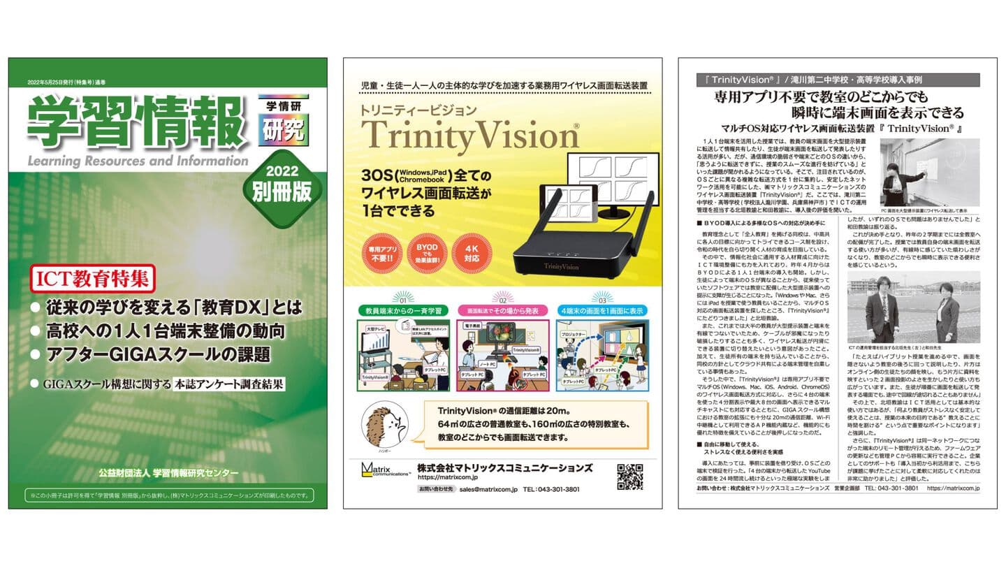 学習情報研究 別冊版(5/25発行)にTrinityVisionの広告・導入事例が掲載されました。